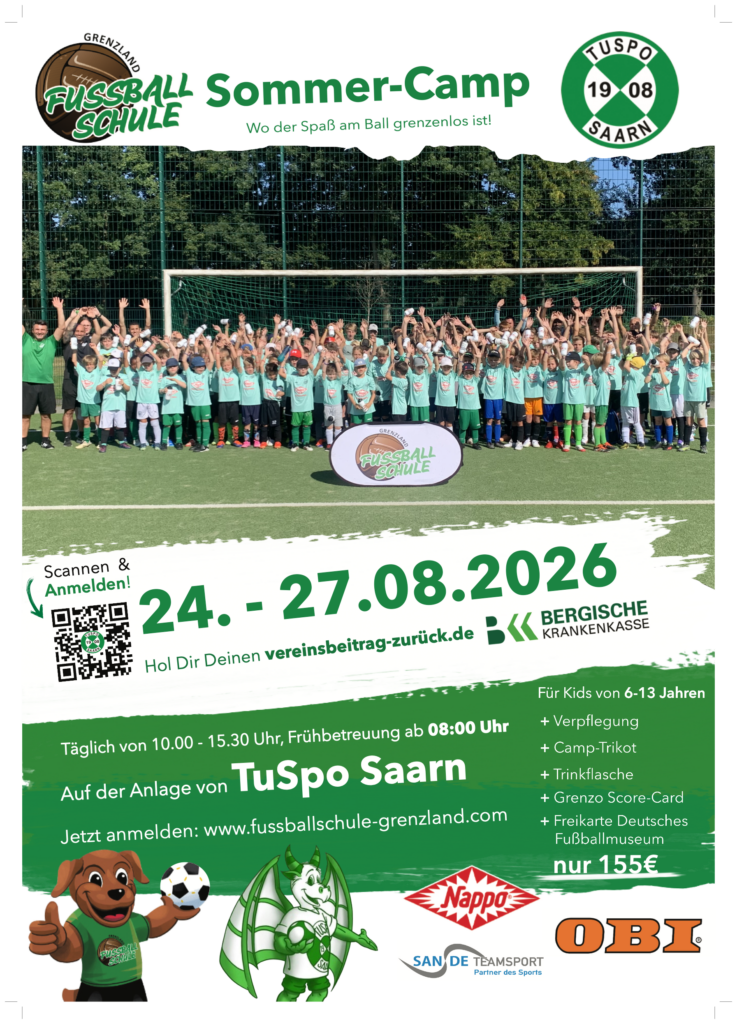 Sichert euch jetzt einen Platz und erlebt ein Fußballcamp voller Emotionen, Teamgeist und Begeisterung beim TuSpo Saarn 1908 e.V. – wir freuen uns auf euch! ⚽