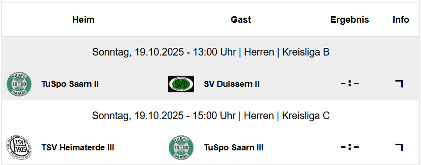 Die weiteren Partien mit TuSpo-Beteiligung am Sonntag: